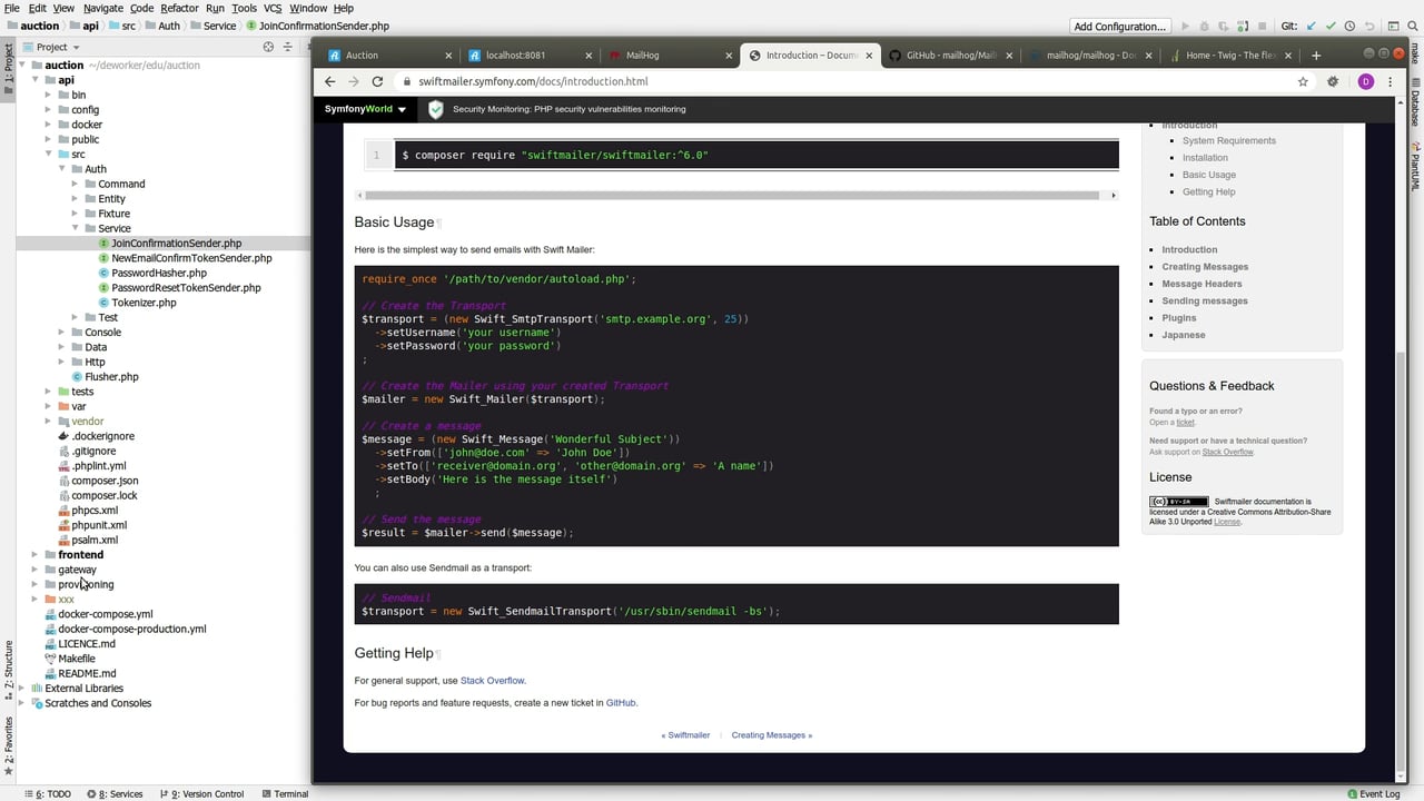 - 00:02:15 Обзор библиотеки Swift Mailer